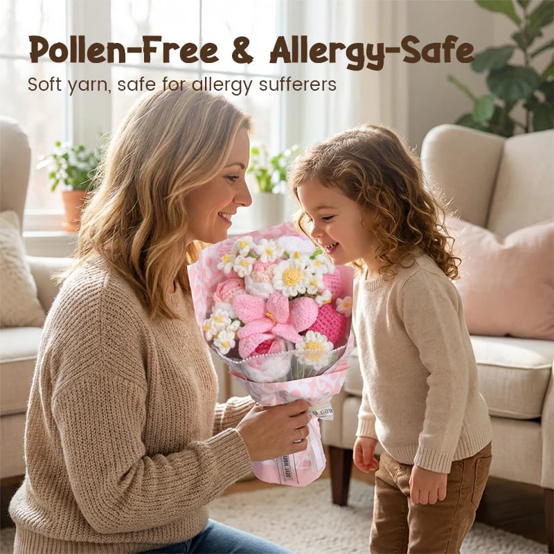 ALLERGY-FREE BEAUTY - Made from soft, high-quality yarn, this bouquet is completely pollen-free. It's the perfect floral gift for friends and loved ones who suffer from allergies, allowing everyone to enjoy its charm.